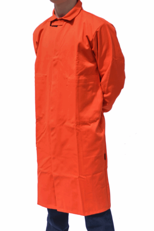 Bata de laboratorio con tratamiento ignífugo, diseñada para brindar protección en entornos donde existe riesgo de exposición a flamas o calor. Confeccionada en tela 100% algodón con acabado retardante al fuego, esta prenda ofrece comodidad y seguridad para tareas técnicas, químicas o industriales. Cuenta con cuello clásico, cierre frontal oculto y bolsillos frontales para herramientas o instrumentos.