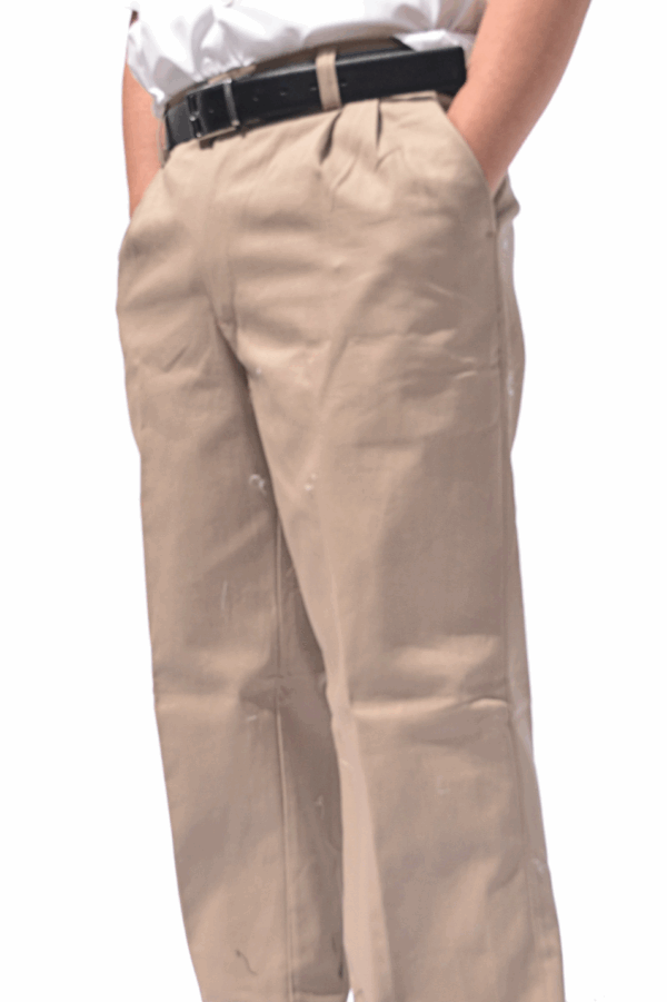 Pantalón de pinzas para caballero confeccionado en gabardina de 65% poliéster y 35% algodón. Diseñado para brindar una imagen formal y comodidad superior, ideal para uniformes ejecutivos o administrativos. Cuenta con pretina, bolsillos laterales y traseros, y pinzas frontales que aportan elegancia y ajuste cómodo.