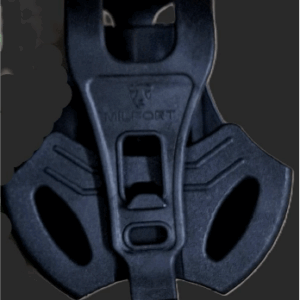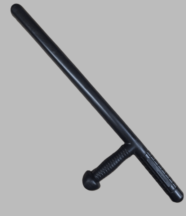 Tonfa táctica de una sola pieza fabricada en polímero negro de alta resistencia. Cuenta con empuñadura perpendicular y superficie texturizada para un mejor agarre. Ideal para cuerpos de seguridad pública o privada como herramienta de defensa y control.